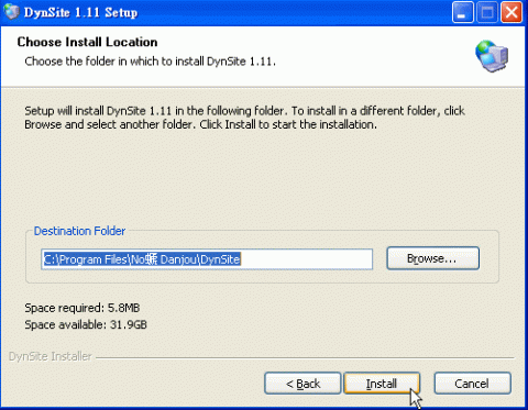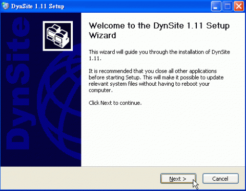 2..解壓縮您下載的 DynSite 執行 Setup.exe 進行安裝的程序