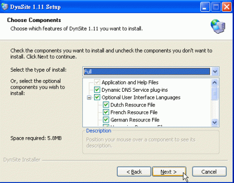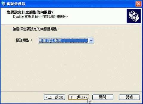 選擇欲安裝的服務,請選擇 動態 DNS 服務,完成後點擊下一步。