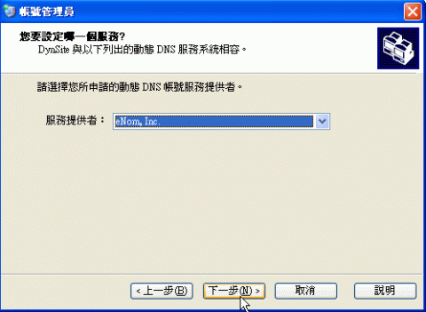 此處選擇與本公司合作的eNom, Inc.的伺服器即可。