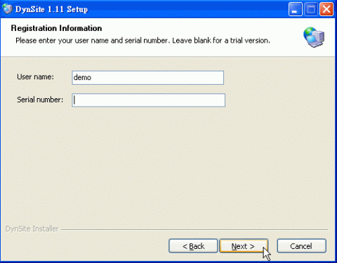 安裝 2. 輸入User name後,點 NExt 擊下一步繼續安裝。