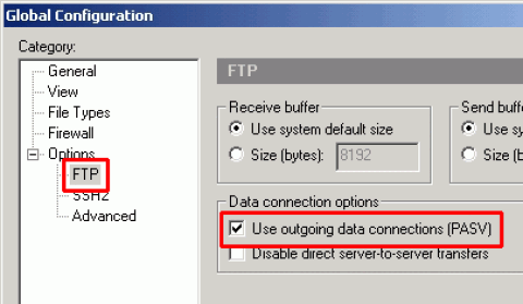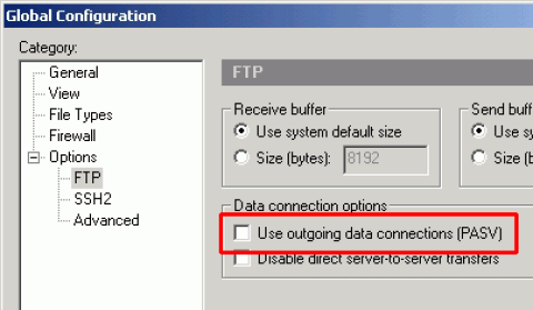 4 在Options项目的FTP设定里,会出现Data connection options工作框,原本里面的默认值是勾选Use outgoing data connections(PASV),如下图所示。